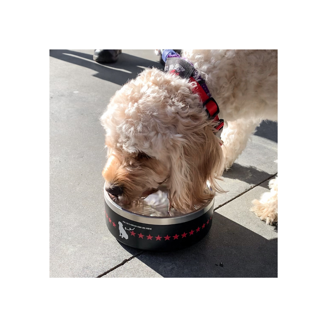 Keep your furry friend's dining area stylish and clean with our stainless steel dog bowls adorned with the classic red star.